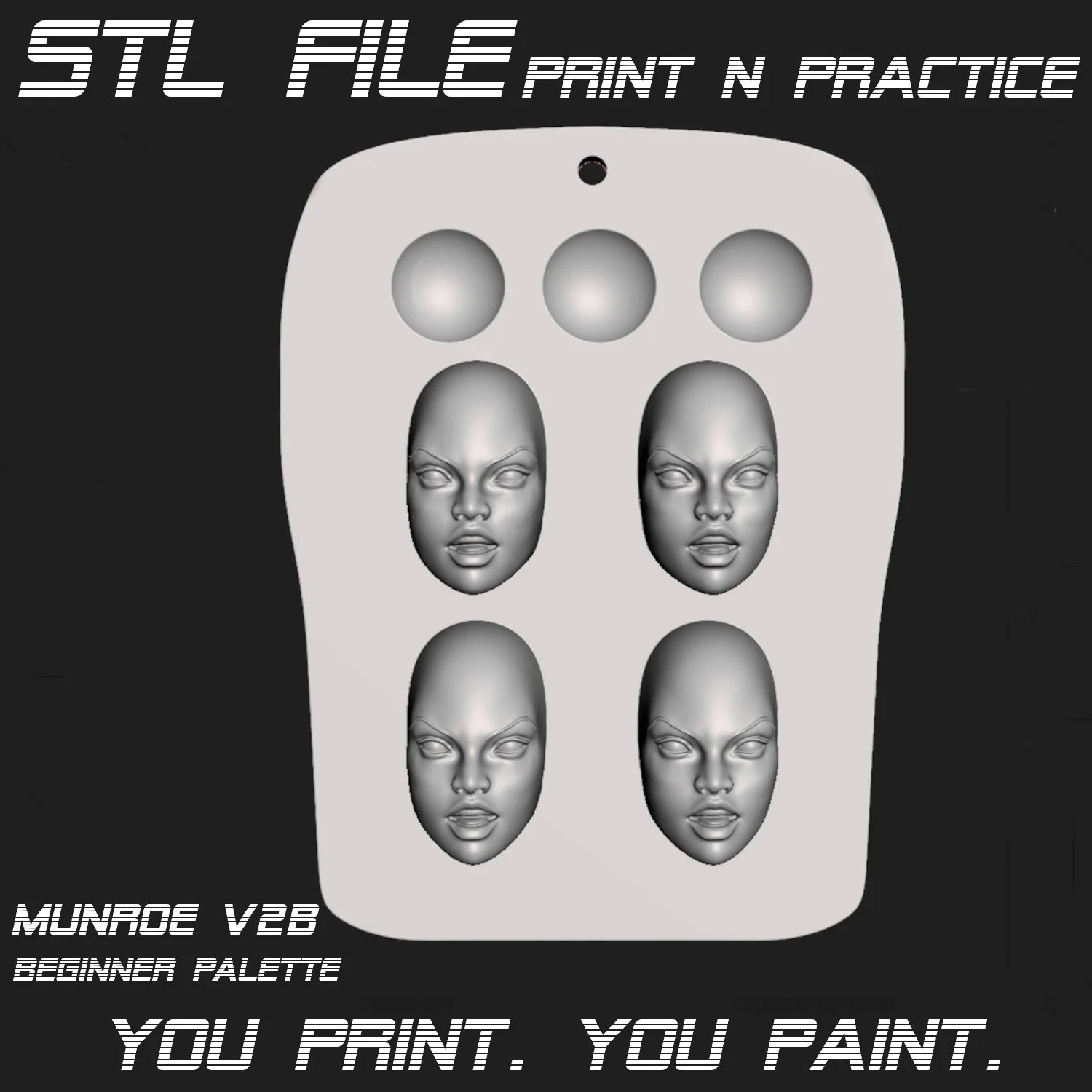 this palette features the face we call Munroe v2 - we have many heads that have simialr expressions, so you can Practice up before painting the actual head